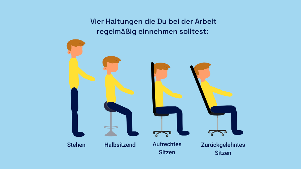 Langes Sitzen kann die Rückengesundheit belasten – doch mit der richtigen Haltung und regelmäßigen Haltungswechseln lassen sich Beschwerden vermeiden. Aktives und dynamisches Sitzen sowie das richtige Verhältnis von Sitzen und Stehen spielen dabei eine entscheidende Rolle. Welche Positionen besonders rückenfreundlich sind und wie du sie optimal in deinen Arbeitsalltag integrierst, erfährst du in unserem Artikel.